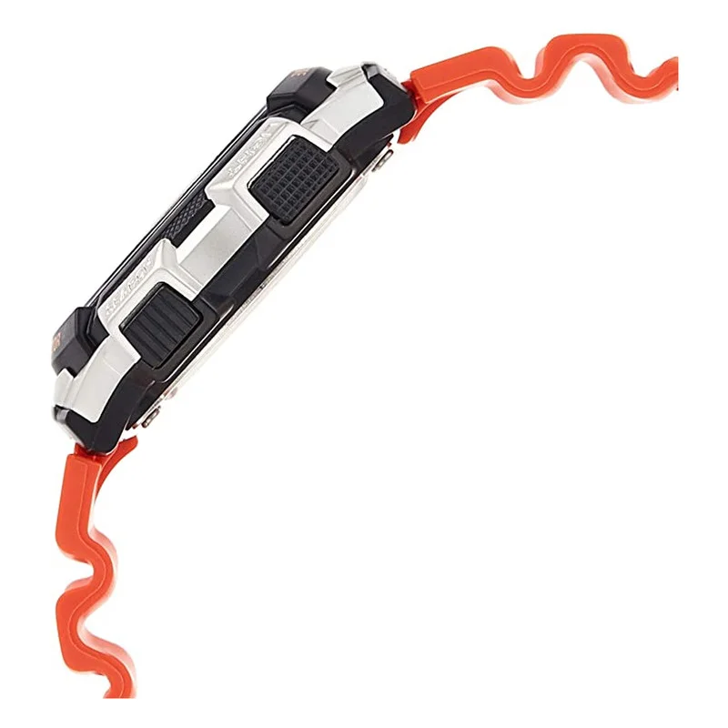 • طراحی اسپرت با بدنه و بند رزینی مقاوم و رنگ جذاب نارنجی/مشکی.