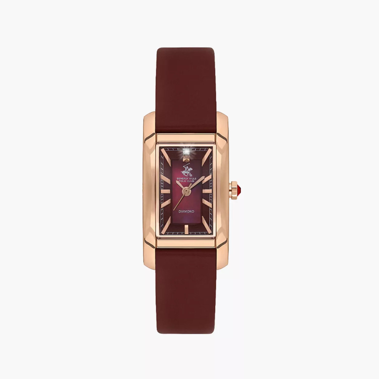 ساعت زنانه بورلی هیلز پولو کلاب مدل BP3613C.428 یک ساعت آنالوگ ظریف با بند چرمی قرمز و قاب فلزی باریک است؛ طراحی شیک و زنانه دارد و برای استفاده روزمره و استایل رسمی مناسب است.