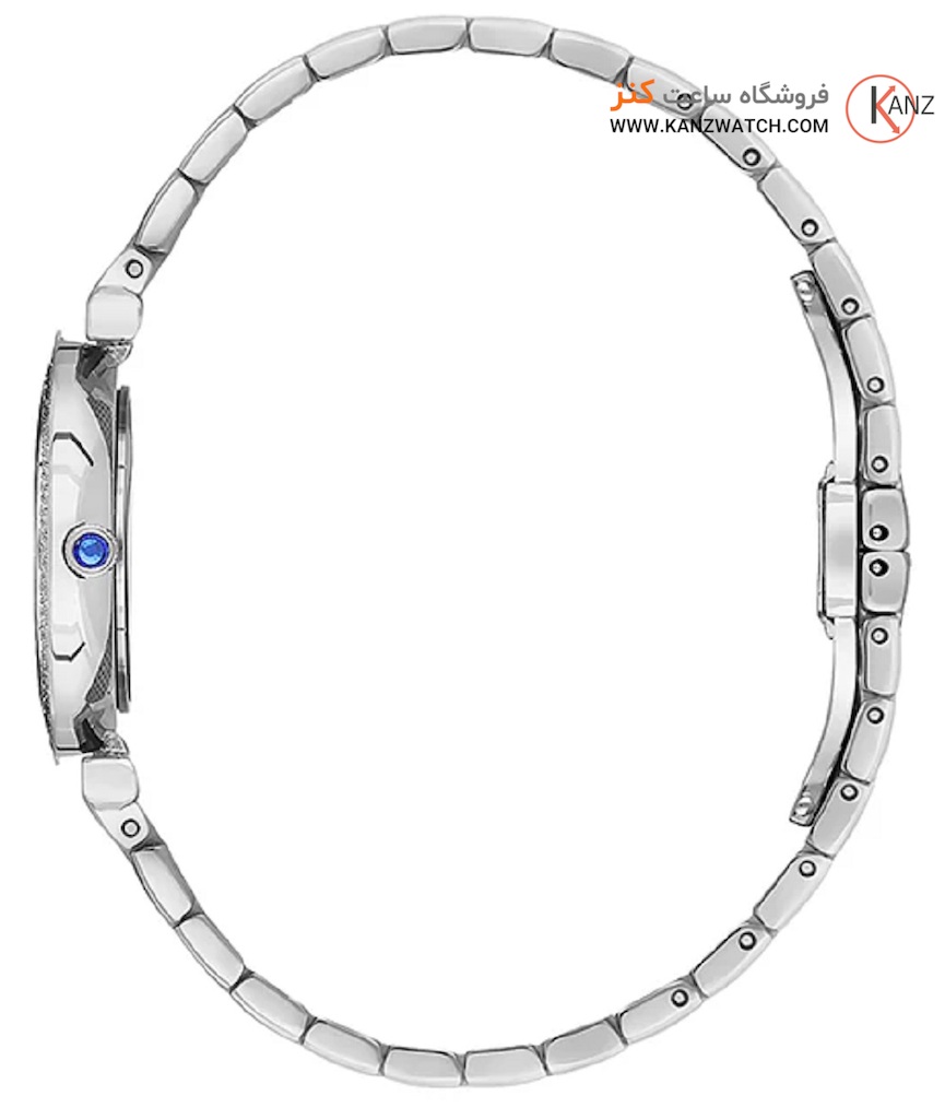 • قاب ساعت گرد است و قطر آن حدود ۳۰ میلیمتر میباشد — یعنی اندازهاش زنانه، ظریف و مناسب مچ کوچک تا متوسط است.