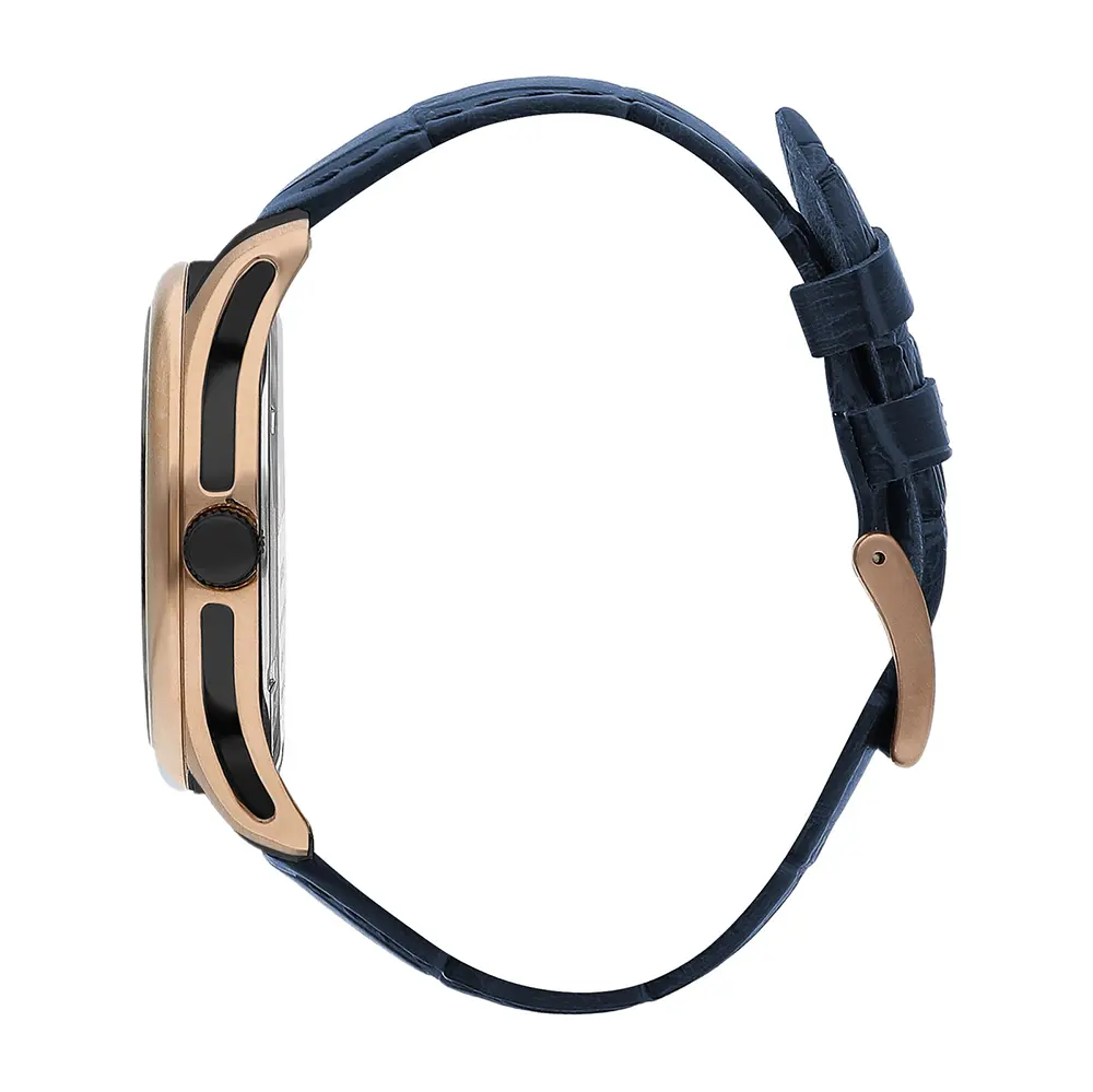 این ساعت دارای بدنهای از فولاد ضد زنگ با قطر حدود ۴۵ میلیمتر، صفحه آبی تیره و بند چرمی آبی است که ظاهری شیک و روزمره به آن میدهد. حرکت آن کوارتز (باتریخور) بوده و تا ۱۰ ATM مقاومت در برابر آب دارد، مناسب استفاده روزمره و رسمی سبک است.