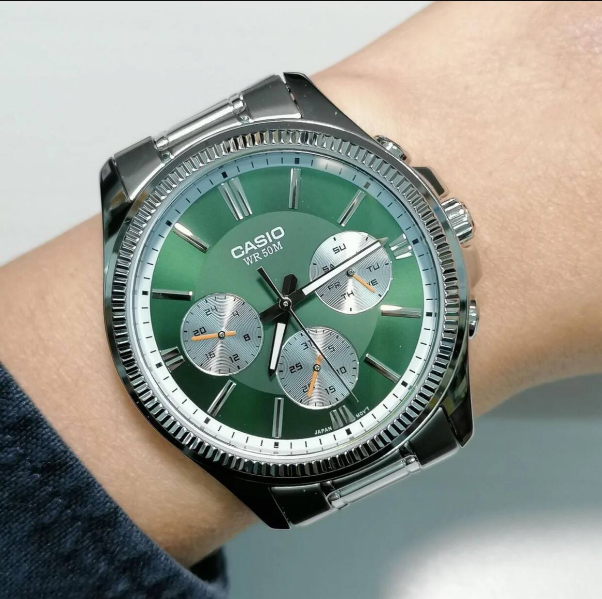 در مقایسه با بسیاری از ساعتهای کلاسیک ساده، MTP-1375D-3AVDF با صفحه سبز تیره و سابدایلهای کاربردی، ظاهری خاصتر و کاملتر دارد. اگر به دنبال ساعتی هستید که هم کلاسیک باشد و هم کمی متفاوت، این مدل انتخابی منطقی و شیک محسوب میشود.